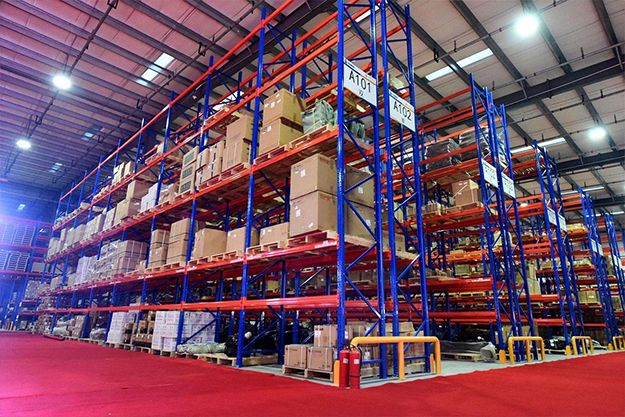 重型托盤貨架采用優質冷軋鋼板經輥壓成型,立柱可高達6米而中間無接縫,橫梁選用(yòng)優質方鋼,承重力大,不易變形,橫梁(liáng)與立(lì)柱之(zhī)間掛件為圓柱凸起插(chā)入,連接(jiē)可靠、拆裝容易,並使用鎖釘,以(yǐ)防(fáng)叉車工作時將橫梁挑(tiāo)起;全部貨架的表麵均經酸洗、磷化(huà)靜電噴(pēn)塗等工序處理,防(fáng)腐防鏽,外形美觀。適用於大型倉(cāng)庫。